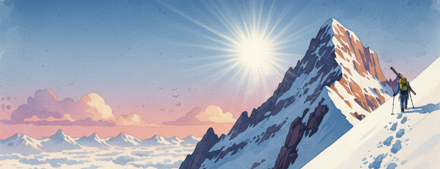 La première partie se fait sur un versant assez raide et la progression en est par conséquence assez efficace. Par ailleurs, nous n’aurons pas trop de distance pour rejoindre le Mont Blanc, les pentes sont assez marquées aujourd'hui.